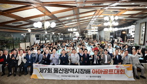 제7회 울산광역시장배 아마골프대회가 지난 29일 울산컨트리클럽에서 열린 가운데 김두겸 울산시장, 김철욱 시체육회장, 김영근 울산시골프협회장 및 참석인사, 참가선수들이 기념촬영하고 있다. 울산시청 제공