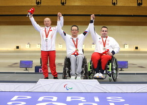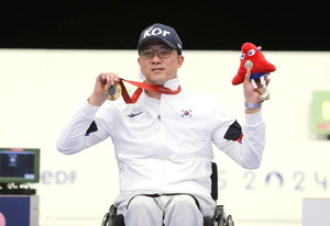 한국 사격의 기세가 2024 파리 올림픽에 이어 2024 파리 패럴림픽에서도 이어지고 있다.장애인 사격대표팀은 파리 패럴림픽 첫 금, 은, 동메달을 싹쓸이하더니 두 번째 금메달까지 명중했다.공기소총 간판 박진호(47·강릉시청)는 지난달 31일(현지시간) 프랑스 샤토루 슈팅센터에서 열린 대회 사격 R1 남자 10m 공기소총 입사(스포츠등급 SH1) 결선에서 249.4점을 쏴 예르킨 가바소프(카자흐스탄·247.7점)를 제치고 우승했다.박진호는 16번째 발까지 5위에 머물렀으나 이후 무서운 집중력으로 추격전에 나선 끝에 결국 금메달을 땄