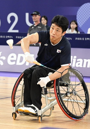 울산 중구청 소속 장애인 배드민턴 정재군(47·사진)이 자신의 생애 첫 패럴림픽 무대를 마감했다. 정재군은 지난 2일(한국시간) 프랑스 파리 포르트드라샤펠 경기장에서 열린 2024 파리 패럴림픽 배드민턴 남자 단식(스포츠등급 WH1) 동메달 결정전에서 토마스 반트슈나이더(독일)에게 0대2(24대26 11대21)로 패했다. 한국 배드민턴 대표팀 최고령 선수인 정재군은 동메달 결정전에서 60세 백전노장인 반트슈나이더를 상대했다. 정재군은 190㎝의 큰 신장을 바탕으로 높은 타점에서 내리꽂는 강한 스매싱이 장점인 반트슈나이더를 만나 1세