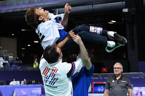 2024 파리 패럴림픽에 출전한 한국 선수단이 메달 레이스 넷째 날 은메달 2개와 동메달 1개를 추가했다.한국은 현지시간 1일까지 금메달 2개, 은메달 5개, 동메달 6개를 획득해 일본과 공동 18위에 올랐다.메달은 효자종목, 보치아와 배드민턴에서 나왔다.장애인 배드민턴 듀오 정재군(47·WH1·울산중구청)-유수영(21·WH2·한국장애인고용공단) 조는 2일(한국시간) 프랑스 파리 포르트드라샤펠 경기장에 열린 대회 결승에서 디펜딩 챔피언인 중국의 마이젠펑-취쯔모 조에 세트 점수 0대2(10대21 12대21)로 패해 은메달을 목에 걸었
