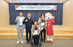 “나이 때문에 더 이상의 패럴림픽은 힘들지 않나 싶습니다. 하늘에 계신 아버지께 메달을 바칠 수 있어 기쁩니다.” 2024 파리 패릴림픽에 출전해 남자 배드민턴 복식 경기에서 은메달을 획득하고, 단식 경기에서 4위를 차지한 정재군(47·울산중구청)이 금의환향한 뒤 이같이 말했다. 울산 중구는 12일 중구청에서 ‘2024 파리 패럴림픽 출전 선수 환영식’을 개최했다. 환영식에는 김영길 중구청장과 박경흠 중구의회 의장, 명일식 중구체육회장, 중구체육회 및 중구장애인체육회 관계자, 중구청 장애인 배드민턴팀 감독 및 선수 등 80여 명이