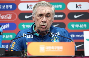 브라질 축구대표팀을 지휘하는 ‘명장’ 카를로 안첼로티(66·이탈리아·사진) 감독이 한국 축구는 압박과 역습이 능하다면서 맞대결을 기대했다.브라질 대표팀은 10일 오후 8시 서울월드컵경기장에서 홍명보 감독이 이끄는 한국과 친선경기를 치른다.안첼로티 감독은 경기 하루 전날인 9일 오후 같은 장소에서 기자회견을 하고 한국과 경기는 물론 2026 북중미 월드컵을 앞둔 브라질 대표팀의 준비 상황 등을 전했다.브라질 대표팀은 한국과 경기 후에는 일본으로 건너가 14일 도쿄에서 일본 대표팀과도 맞붙는다.한국은 브라질과 역대 8차례 맞붙어 1승