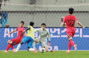 한국 20세 이하(U-20) 축구 대표팀이 수적 우세를 안고도 파라과이와 득점 없이 비기면서 2025 국제축구연맹(FIFA) U-20 월드컵 조별리그 2경기 무승에 그쳤다.이창원 감독이 이끄는 한국은 1일(한국시간) 칠레 발파라이소의 에스타디오 엘리아스 피게로아 브란데르에서 열린 대회 조별리그 B조 2차전에서 파라에이와 0대0 무승부를 기록했다.지난달 28일 대회 첫 경기에서 우크라이나에 1대2로 졌던 한국은 대회 1무 1패로 승점 1을 얻었다.1차전에서 파나마를 3대2로 따돌렸던 파라과이는 1승 1무로 승점 4를 쌓았다.이 조에선