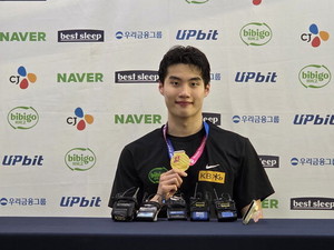 제106회 전국체전에서 세 번째 금메달을 목에 걸며 수영 자유형 400m 4연패를 달성한 ‘한국 수영 간판’ 김우민(24·강원도청)은 여기서 안주하지 않는다.김우민은 “이번이 4연패이기는 하지만, 저는 앞으로 10연패도 하고 싶기 때문에 꾸준히 계속 잘할 생각”이라고 씩 웃어 보였다.김우민은 21일 부산 사직종합운동장 실내수영장에서 열린 제106회 전국체육대회(전국체전) 수영 남자 일반부 자유형 400m 결승에서 3분46초38에 터치패드를 찍었다.박태환이 2016년 제97회 전국체전에서 작성한 대회 기록(3분43초68)을 경신하지는