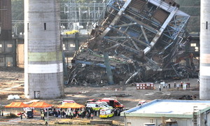 6일 울산 남구 용잠동 한국동서발전 울산발전본부 울산화력발전소에서 60m 높이 보일러 타워가 무너지면서 매몰된 작업자들에 대한 수색·구조 작업이 이뤄지고 있다. 김도현기자 do@ksilbo.co.kr