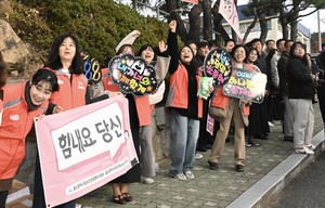 2026학년도 대학수학능력시험이 실시된 13일 오전 울산 중앙고 시험장에서 울산지역 청소년단체 회원들이 수험생들을 격려하고 있다.김경우기자 woo@ksilbo.co.kr
