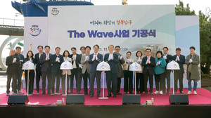 14일 울산 남구 장생포 고래박물관 앞 광장에서 'The Wave 사업 기공식'이 열렸다.서동욱 울산남구청장, 이상기 울산남구의회 의장과 참석내빈들이 기념촬영을 하고 있다.김도현기자 do@ksilbo.co.kr