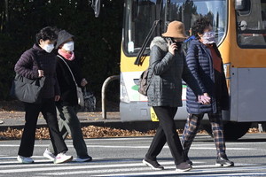 18일 울산 북구 매곡동과 울주군 삼동면 지역에 올해 가을 들어 처음으로 영하의 날씨를 기록하는 등 한파가 몰아쳤다. 거리를 지나는 시민들이 몸을 잔뜩 움츠린 채 걸음을 옮기고 있다. 김동수기자 dskim@ksilbo.co.kr