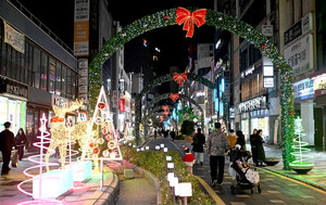 울산 남구는 21일 삼산디자인거리, 울산대 앞 바보사거리, 왕생로 일원에 2025년 겨울빛거리 야간경관 연출 동시 점등식을 갖고 운영에 들어갔다.삼산디자인거리를 찾은 시민들이 화려한 가로수 조명과 불빛조형물 옆을 지나고 있다.김경우기자 woo@ksilbo.co.kr