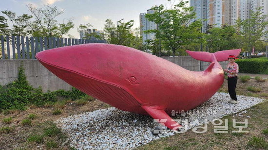 무슨 모양을 의도적으로 나타낸 건지 저절로 돌무더기가 생긴 건지 알 수는 없었지만 크고 작은 돌들이 쌓였거나 흩어져 있다. 배롱나무를 지나 고래가 있는 곳으로 갔다. 초등학생 두 명이 고래 모형 주변을 맴돈다. “얘들아 너희들은 이 고래가 좋니?”라고 물었더니 아니라고 한다. 그러면 왜 여기 계속 있느냐고 했더니 고래를 타고 싶단다. 그러면서 이 고래 등에 올라가도 되는지를 되묻는다. 고래 주변에는 주의 팻말이 보이지 않았다. 어떤 대답을 해야 할지 몰라 고래 몸을 살짝 두드리다가, 타면 안 될 것 같다고 했다.