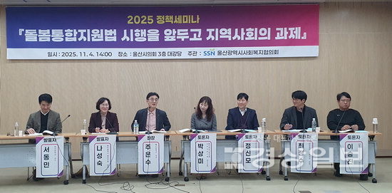 ▲ 울산시사회복지협의회(회장 오세걸)는 4일 울산시의회 3층 대회의실에서 ‘돌봄통합지원법 시행을 앞두고 지역사회의 과제’를 주제로 한 정책세미나를 개최했다.울산시사회복지협의회(회장 오세걸)는 4일 울산시의회 3층 대회의실에서 ‘돌봄통합지원법 시행을 앞두고 지역사회의 과제’를 주제로 한 정책세미나를 개최했다.