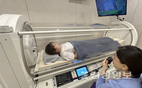 이로써 울산병원은 다인용 6기압 고압산소치료기기 1대와 1인용 고압산소치료기기 1대를 운영하게 됐다.