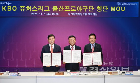 울산시·한국야구위원회(KBO)·울산시체육회는 5일 울산시청에서 ‘KBO 퓨처스리그 울산프로야구단(가칭) 창단을 위한 업무협약’을 체결하고 2026년 정규시즌 참가를 목표로 실행 절차에 착수했다.