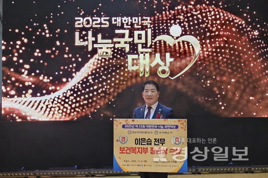 ▲ 이은습 울산 대우여객자동차·우리버스(주) 전무이사가 6일 서울 KBS 신관 아트홀에서 열린 ‘2025 제14회 대한민국 나눔 국민대상’ 시상식에서 보건복지부 장관상을 수상했다.이은습 울산 대우여객자동차·우리버스(주) 전무이사가 6일 서울 KBS 신관 아트홀에서 열린 ‘2025 제14회 대한민국 나눔 국민대상’ 시상식에서 보건복지부 장관상을 수상했다. 이춘봉 bong@ksilbo.co.kr 다른기사 보기 저작권자 © 경상일보 무단전재 및 재배포 금지 개의 댓글 회원로그인 작성자 비밀번호 댓글 내용입력 댓글 정렬 최신순 추천순 답글순 BEST댓글 BEST 댓글 답글과 추천수를 합산하여 자동으로 노출됩니다. 닫기 더보기 댓글삭제 삭제한 댓글은 다시 복구할 수 없습니다. 그래도 삭제하시겠습니까? 비밀번호 닫기 댓글수정 댓글 수정은 작성 후 1분내에만 가능합니다. 본문 / 400 비밀번호 닫기 내 댓글 모음 닫기