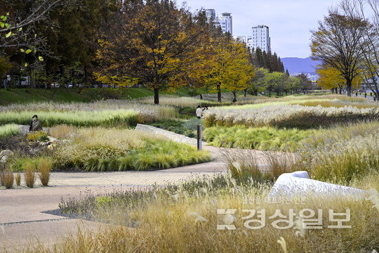 번영교부터 학성교를 따라 화이트뮬리, 수크령, 억새 등 다양한 그라스류 식물들이 풍성하게 자라 분홍빛의 가우라와 황금빛의 국화가 어우러져 화려한 가을 풍경을 선보이고 있다.