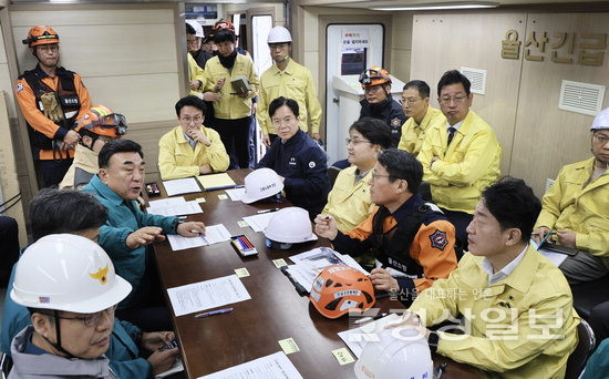 ▲ 지난 8일 울산화력발전소 붕괴 사고 현장을 찾은 김민석 국무총리가 상황판단회의를 주재한 가운데 김두겸 울산시장이 인명구조에 대해 이야기하고 있다. 울산시청 제공 지난 8일 울산화력발전소 붕괴 사고 현장을 찾은 김민석 국무총리가 상황판단회의를 주재한 가운데 김두겸 울산시장이 인명구조에 대해 이야기하고 있다. 울산시청 제공
