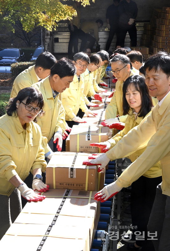 천창수 울산시교육감과 시교육청 직원들은 이날 청사에 도착한 문답지를 옮겼다.