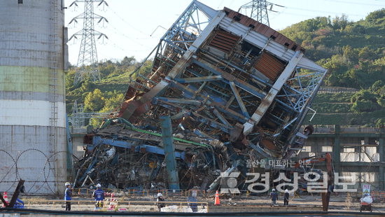 민주노총 울산지역본부·중대재해없는 세상만들기 울산운동본부는 이날 ‘한국동서발전 중대재해에 대한 입장발표’ 기자회견을 열고 “HJ중공업의 안전관리계획서에 따르면 해체공정 중 전도사고 위험성은 15점 만점에 12점으로 평가됐지만, 관리적 제어에 그친 채 절단작업이 이어졌다”며 “또 공사 지연으로 인한 일정 압박 속에 무리하게 사전 취약화 작업을 진행했을 가능성도 제기된다”고 주장했다.