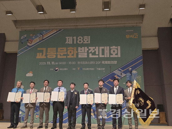 11일 서울 한국프레스센터에서 열린 이번 대회는 도로·철도·항공·해양 등 교통 전 분야에서 선진 교통문화 정착과 교통안전 향상에 기여한 유공자를 발굴·포상하는 행사로 올해는 개인 134명과 단체 6곳 등 140명이 수상의 영예를 안았다.