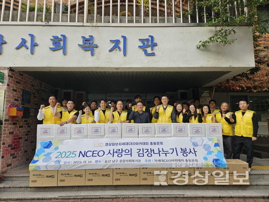 ▲ 본사 차세대 CEO 아카데미 총동문회(회장 최시훈)가 지난 14일 울산남구종합사회복지관에 김장 8㎏ 30박스와 옛간 김 5박스를 전달하는 김장나누기 봉사활동을 펼쳤다.본사 차세대 CEO 아카데미 총동문회(회장 최시훈)가 지난 14일 울산남구종합사회복지관에 김장 8㎏ 30박스와 옛간 김 5박스를 전달하는 김장나누기 봉사활동을 펼쳤다.
