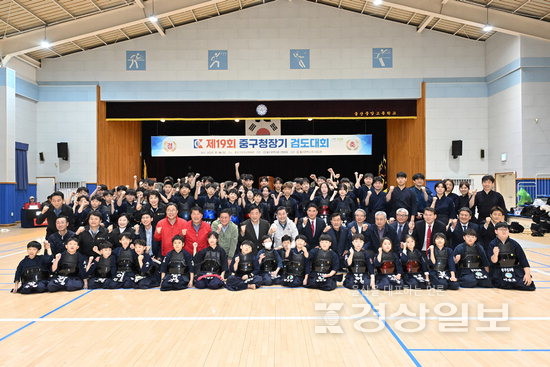 ▲ 제19회 울산 중구청장배 검도대회가 16일 중앙고등학교 체육관에서 열린 가운데 김영길 구청장과 박경흠 중구의회 의장, 박성민 국회의원, 이성룡 시의회 의장, 박원태 중구검도협회장, 시·구의원, 선수들이 기념촬영을 하고 있다.제19회 울산 중구청장배 검도대회가 16일 중앙고등학교 체육관에서 열린 가운데 김영길 구청장과 박경흠 중구의회 의장, 박성민 국회의원, 이성룡 시의회 의장, 박원태 중구검도협회장, 시·구의원, 선수들이 기념촬영을 하고 있다.
