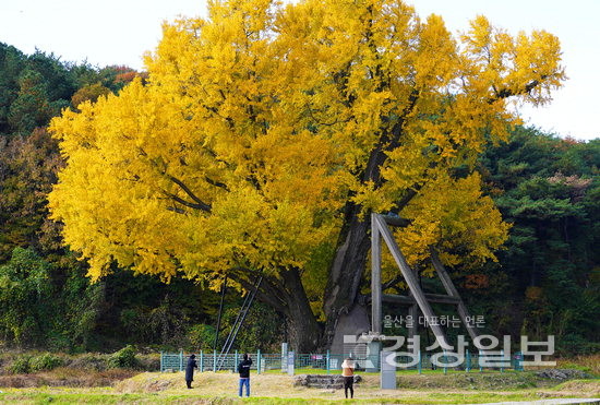 17일 울산 울주군 두서면 구량리에 위치한 수령 600년된 은행나무가 샛노랗게 물들어 늦가을 장관을 연출하고 있다. ‘울주 구량리 은행나무’는 천연기념물로 지정돼 있다.