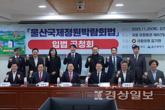 김 의원은 “‘한강의 기적’이 성장의 역사라면, ‘태화강의 기적’은 산업수도 울산의 발전과 환경보전이 공존하는 ‘상생의 역사’라 할 수 있다”라며 “2028 국제정원박람회는 울산의 재도약을 위한 지렛대가 될 뿐 아니라, 대한민국을 넘어 전 세계에 성장과 환경의 공존을 이뤄낸 울산의 성공사례를 알릴 수 있는 계기가 될 것”이라고 강조했다. 아울러 그는 “법안, 예산, 인프라 구축 등 박람회의 성공개최를 위한 선결 조건들이 많은 만큼, 시간이 넉넉지만은 않기에 법안 통과에 박차를 가해야 한다”며 “26일로 예정된 법안소위 통과는 물론, 본회의까지 신속히 통과할 수 있도록 여러 의원은 물론 정부와 꾸준히 소통하며 최선을 다하겠다”고 밝혔다. 전상헌기자 honey@ksilbo.co.kr