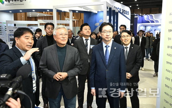 문재인 전 대통령이 20일 지방시대 엑스포가 열리고 있는 울산전시컨벤션센터를 방문해 김경수 지방시대위원장의 안내를 받으며 부스를 둘러보고 있다. 김동수기자 dskim@ksilbo.co.kr