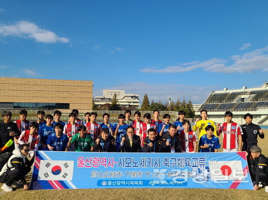 축구 교류전은 학성고등학교(감독 김종필) 1·2학년 선수단과 시모노세키시 고등학교 선발 1학년·3학년 대표팀이 맞붙었다.