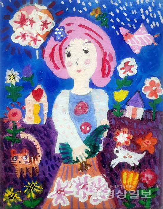 전시에는 총 15명의 학생이 참여했다. 미술반 8명은 각자 개성이 담긴 상상력으로 다양한 회화 작품을 선보였고, 글쓰기반은 짧은 시를 시화 작업으로 완성해 전시장에 걸었다.