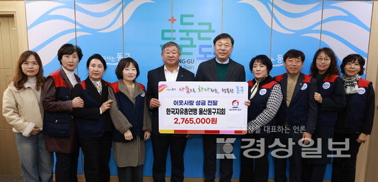 ▲ 한국자유총연맹 동구지회는 24일 울산 동구청을 방문해 관내 복지관을 지원해 달라며 성금 276만5000원을 김종훈 동구청장에게 전달하고 있다.한국자유총연맹 동구지회는 24일 울산 동구청을 방문해 관내 복지관을 지원해 달라며 성금 276만5000원을 김종훈 동구청장에게 전달하고 있다.