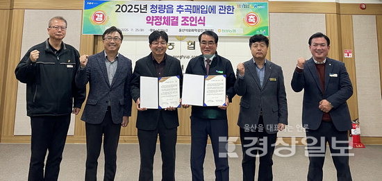 울산석유화학단지와 청량농협은 25일 2025년 청량지역 추곡수매 약정 체결 조인식을 진행했다.