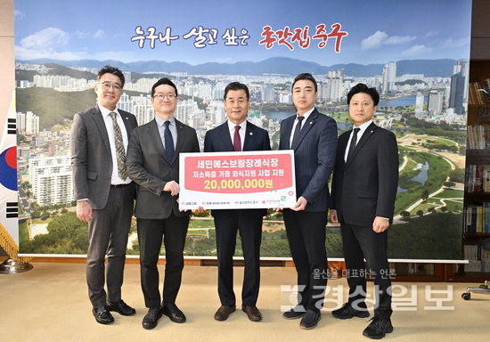 전달식에는 김영길 중구청장과 김경곤 보람카네기 법인 대표, 김현진 세민에스보람장례식장 사무장, 양호영 울산사회복지공동모금회 사무처장 등이 참석했다.